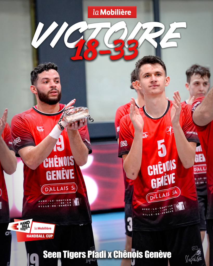 La seconde période confirme la supériorité genevoise. Solides dans les duels, précis dans les transmissions et appliqués dans la finition, les joueurs de Chênois continuent de creuser l’écart. Les arrêts de notre gardien Andreas Wieser combiné à Mehdi Kerboua et Loïc Deville qui enchaînent les réalisations, ainsi que Haiko Butans qui s’invite à la fête dans le dernier quart d’heure permettent de continuer sur cette lancée. Le collectif maintient son intensité jusqu’au coup de sifflet final, s’offrant une victoire convaincante 33–18.