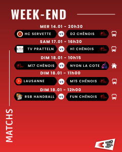 Un tiers du championnat déjà joué – défaite contre le HSC Suhr Aarau 34:23 (17:11) Le championnat 2023/24 a débuté il y a un mois seulement, mais un tiers des matches sont déjà joués. Pour le néo-promu, le bilan est très positif : 2 victoires, 1 match nul et 6 défaites.Continuer la lecture